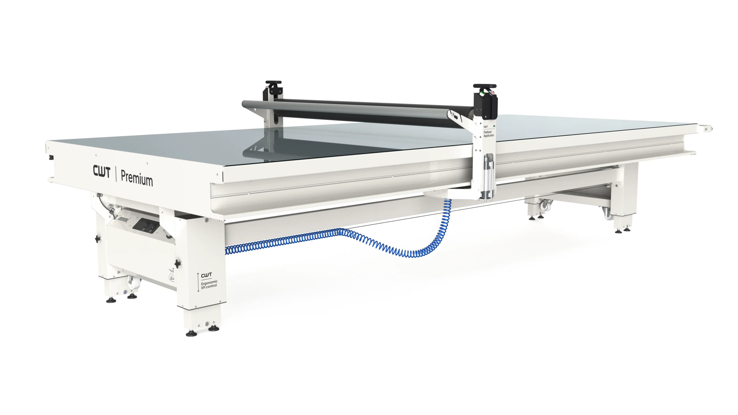 Our most popular and original classic model has been updated to new standards. Introducing our latest flatbed applicator, a robust production machine designed for uninterrupted long shifts. Equipped with essential features such as a light table, electronic height adjustment, and an integrated cutting solution, it offers high production capacity and a worktable that accommodates a wide range of standard substrates and media widths available on the market.